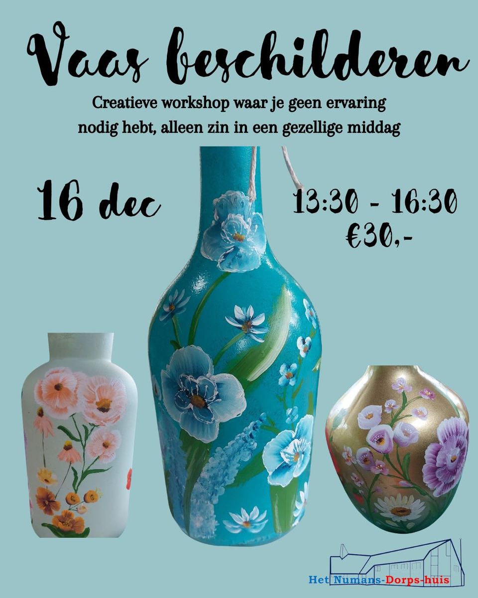 Je hebt geen ervaring nodig, want onder begeleiding van Linda en Wilma leer je hoe je een gewone vaas omtovert tot een uniek kunstwerk vol bloempracht. Stap voor stap nemen we je mee in het schilderproces en geven tips & tricks bij het maken van jullie unieke vaas. Aan het einde van de middag ga je naar huis met een mooie zelf beschilderde vaas.