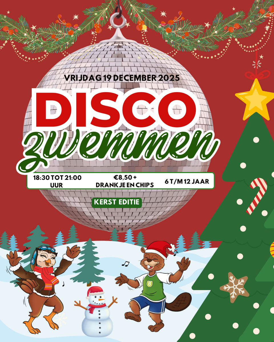 Trommel je vrienden op en kom naar het leukste discofeestje van de maand! Op vrijdag 19 december verandert Sportcentrum De Boogerd in een winters zwemparadijs vol vrolijke kerstbeats, twinkelende lichtjes en heel veel waterpret.