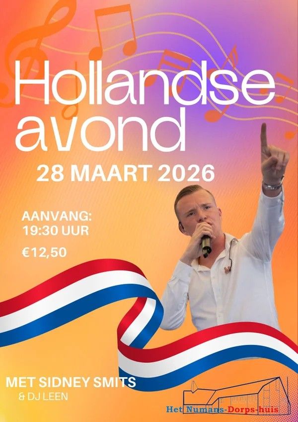 Een heel gezellige Hollandse avond. DJ Leen draait de leukste meezingers en met optredens van Sidney Smits belooft dat een topavond te worden.