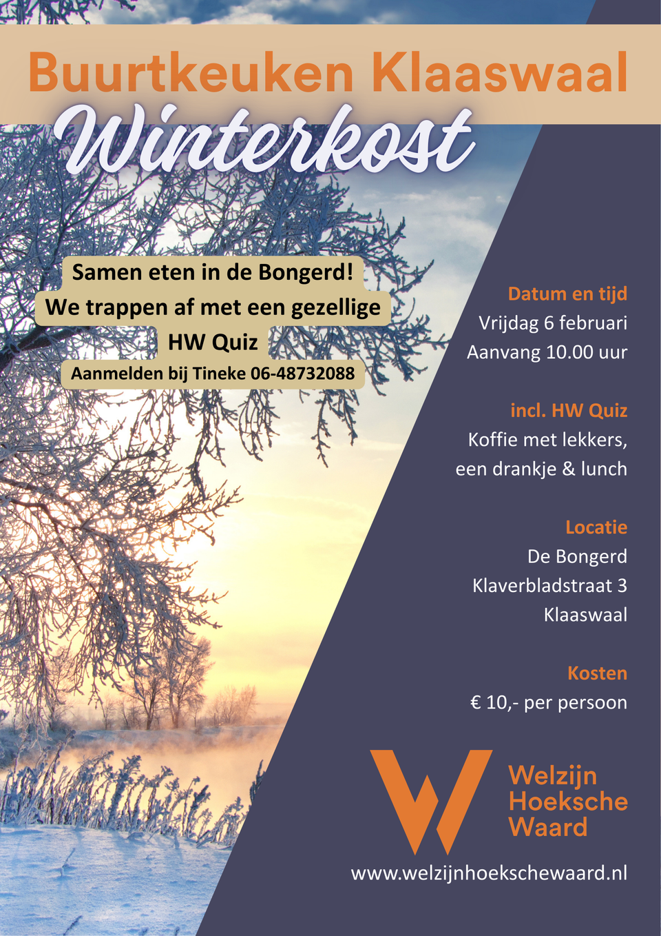 Op vrijdag 6 februari ben je van harte welkom bij de Buurtkeuken in Klaaswaal: een gezellige ontmoeting voor buurtgenoten.