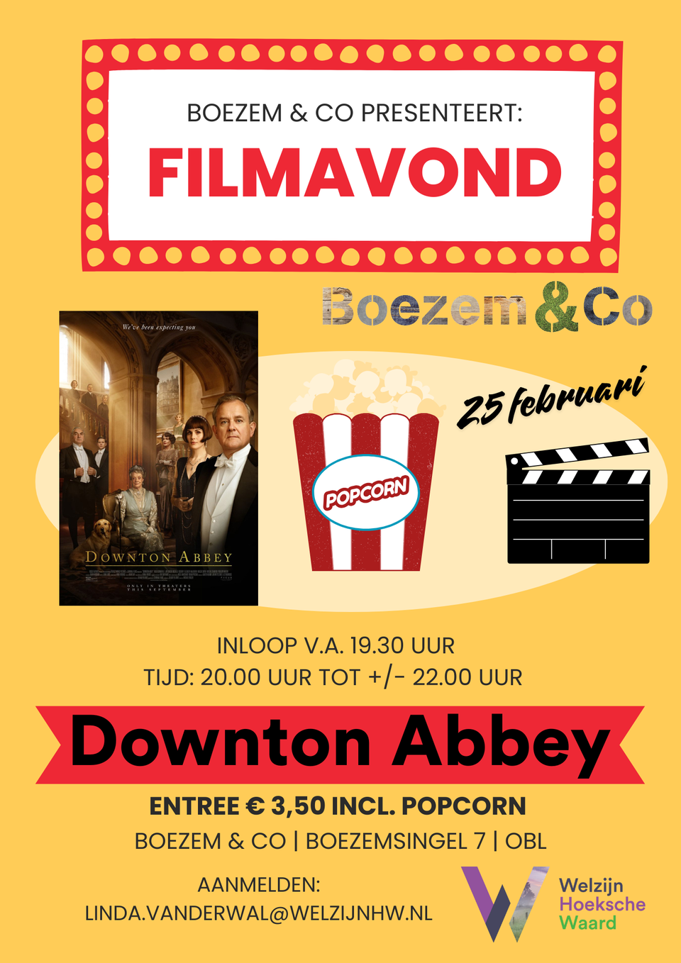 De vrijwilligers van Boezem & Co organiseren weer een gezellige filmavond. Op een groot (TV)scherm kijk je naar de kostuumfilm ‘Downton Abey’. De film volgt de familie Crawley die samen met hun staf het landhuis Downton Abey in gereedheid gaan brengen voor het koninklijk bezoek. De film is Engelstalig en voorzien van Nederlandse ondertiteling.