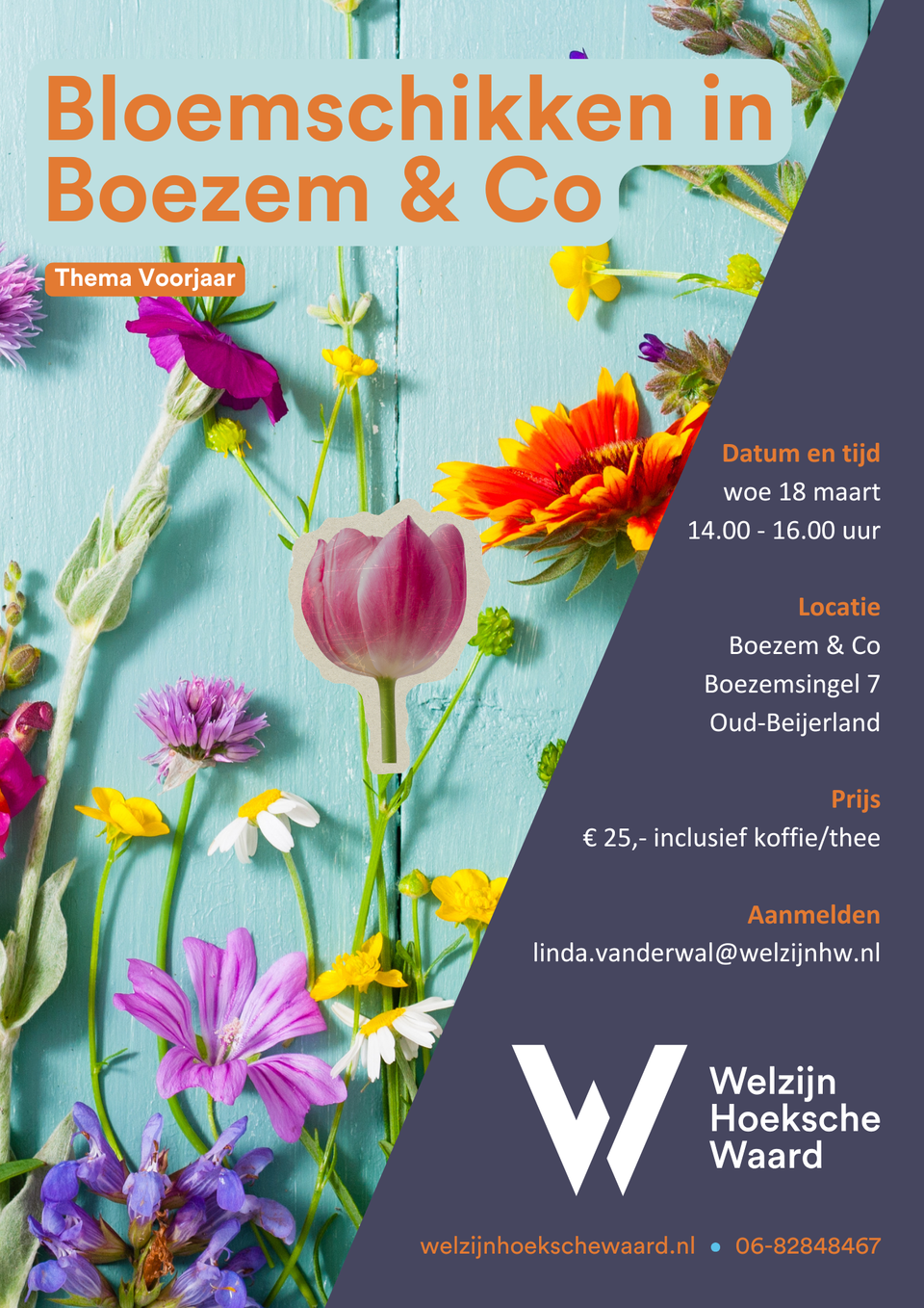 Wegens succes in de herhaling! Houdt u ook zo van het voorjaar? Het zonnetje gaat steeds meer schijnen en er verschijnen overal voorjaarsbloemetjes boven de grond! Bij Boezem & Co staan we al volop in lentesfeer en dat brengen we graag in de praktijk tijdens een gezellige workshop bloemschikken.