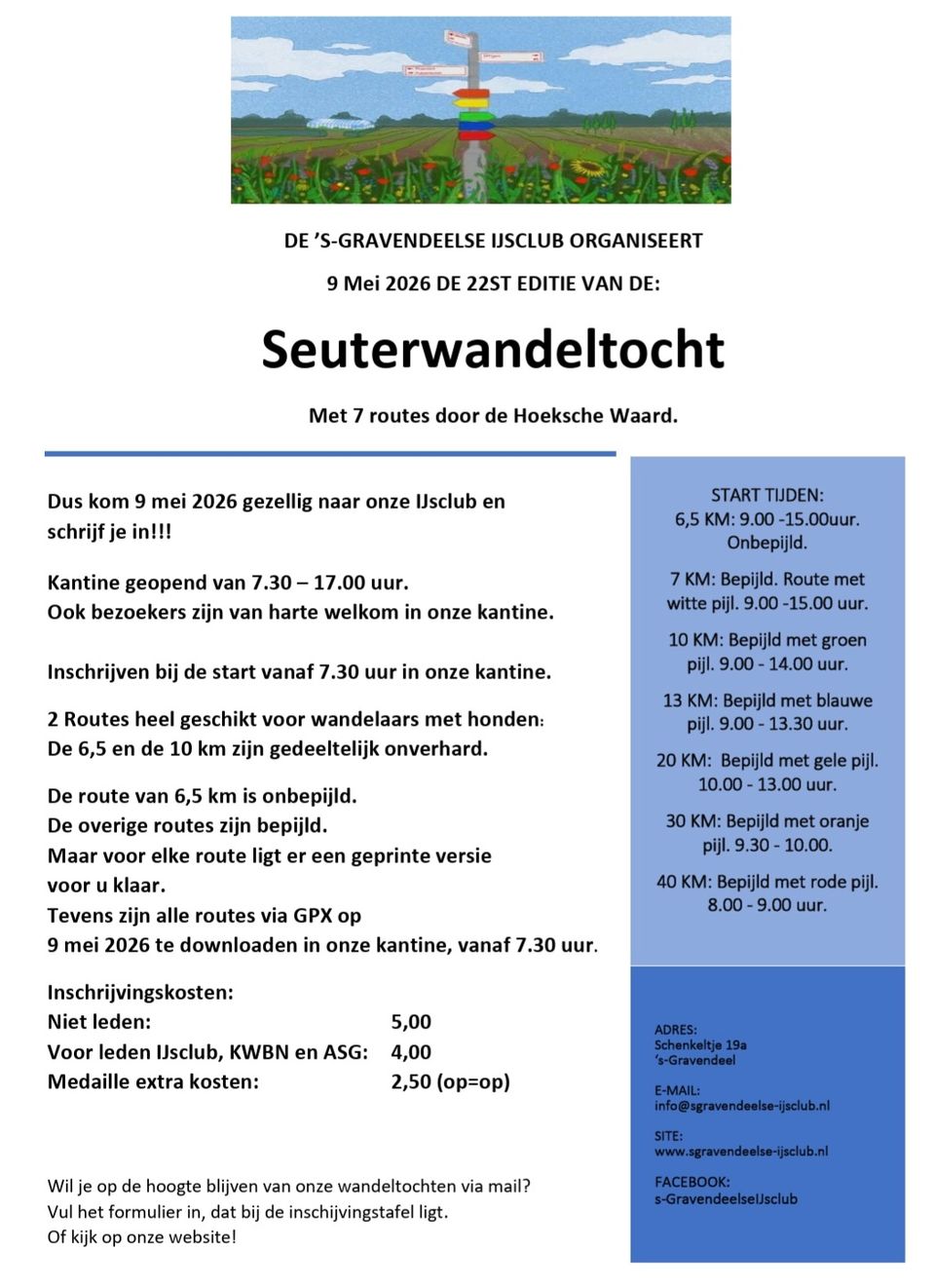 Op zaterdag 9 mei organiseert de 's-Gravendeelse IJsclub weer de Seuterwandeltocht. Met keuze uit 7 routes, waarvan 2 heel geschikt om met de hond te wandelen.