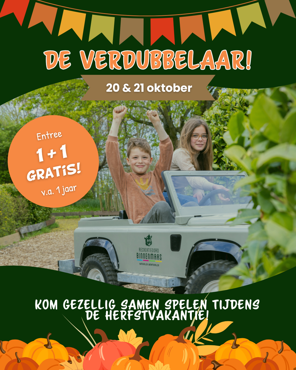 P.S. Deze herfstvakantie valt er nog veel meer te beleven bij Recreatieoord Binnenmaas! Bekijk de website voor het volledige programma.