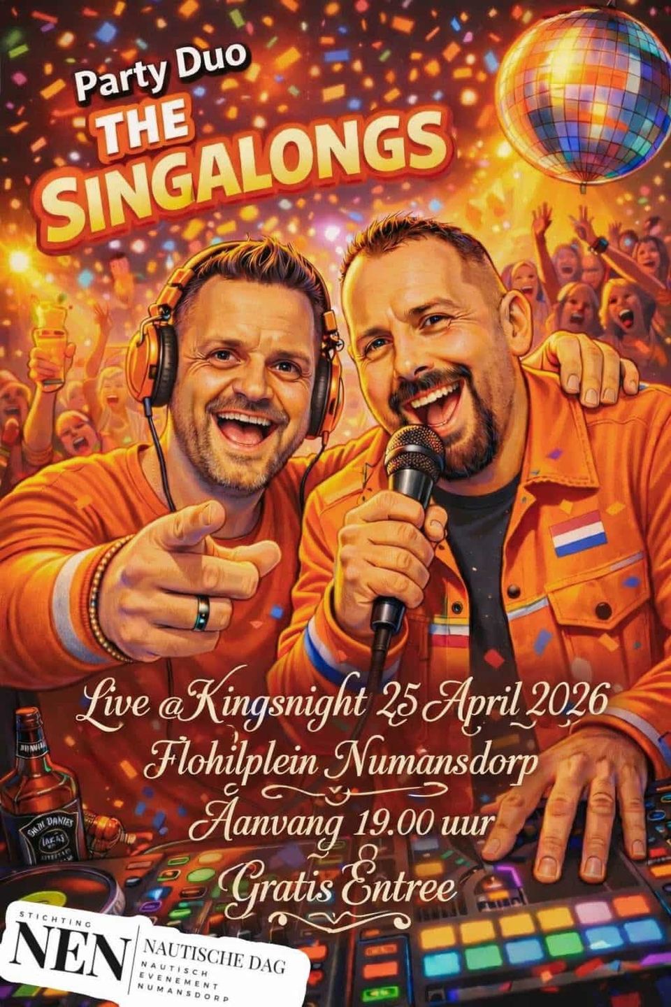 Stichting NEN organiseert een spectaculaire Koningsnacht. Met live muziek van PartyDuo – The Singalongs 🎤 Zing, dans en feest tot in de late uurtjes! Gratis entree!