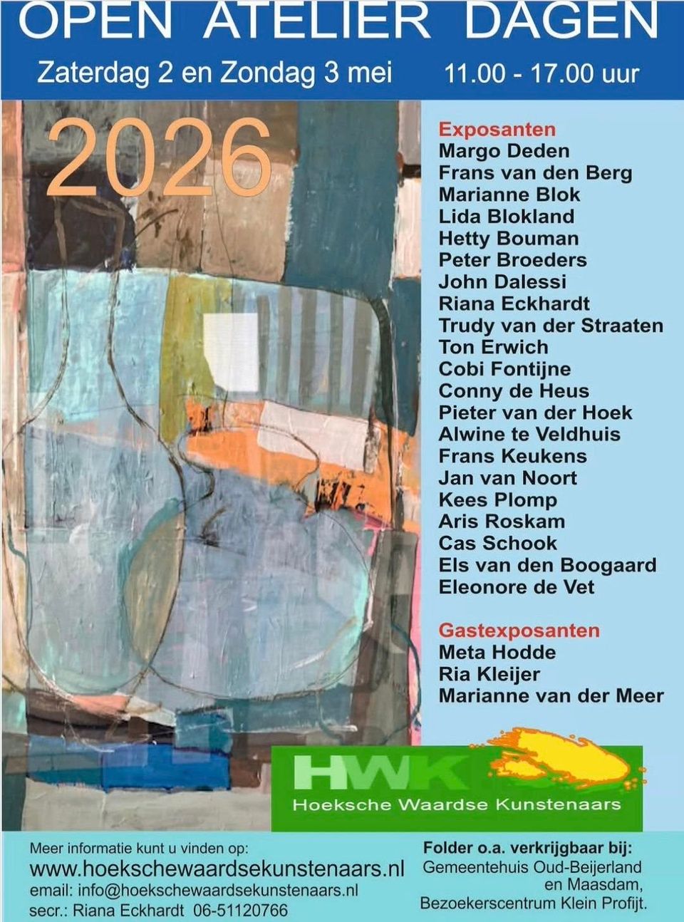 Open atelier dagen van Hoekse Waardse kunstenaars. Tweedaags evenement verspreid op meerdere locaties in de Hoeksche Waard.