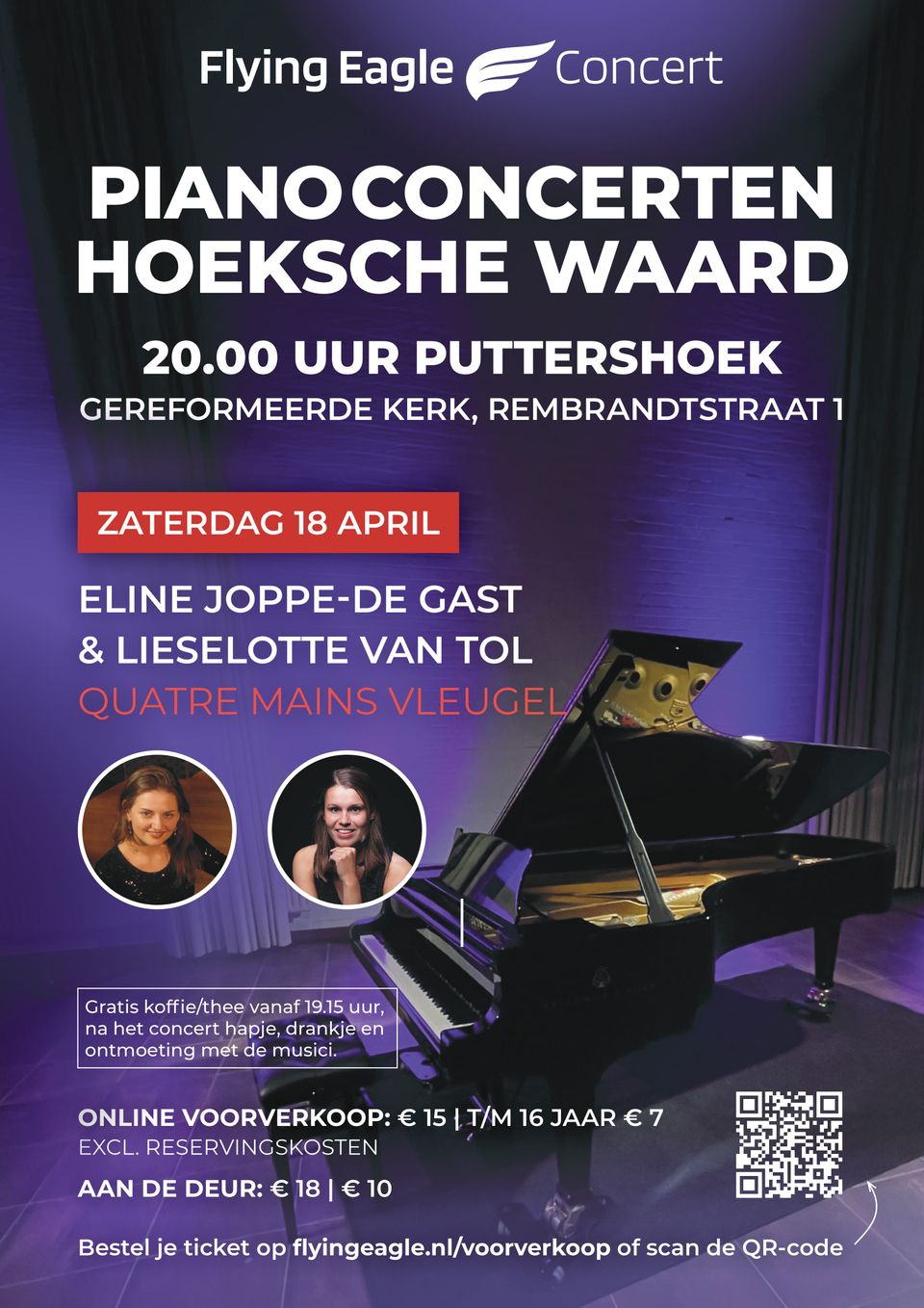 Pianoconcert met pianoduo Eline Joppe-de Gast en Lieselotte van Tol. Zij bespelen de Steinway concertvleugel in Puttershoek met een diversprogramma.